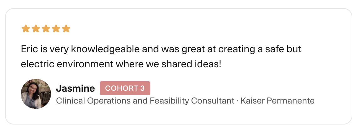 A peer cohort and lasting connections — Work alongside professionals making similar transitions. Share insights, get feedback, and expand your network in real time.