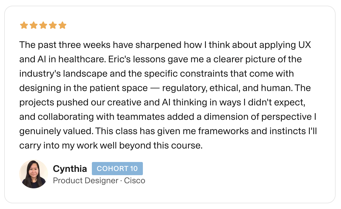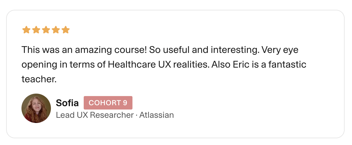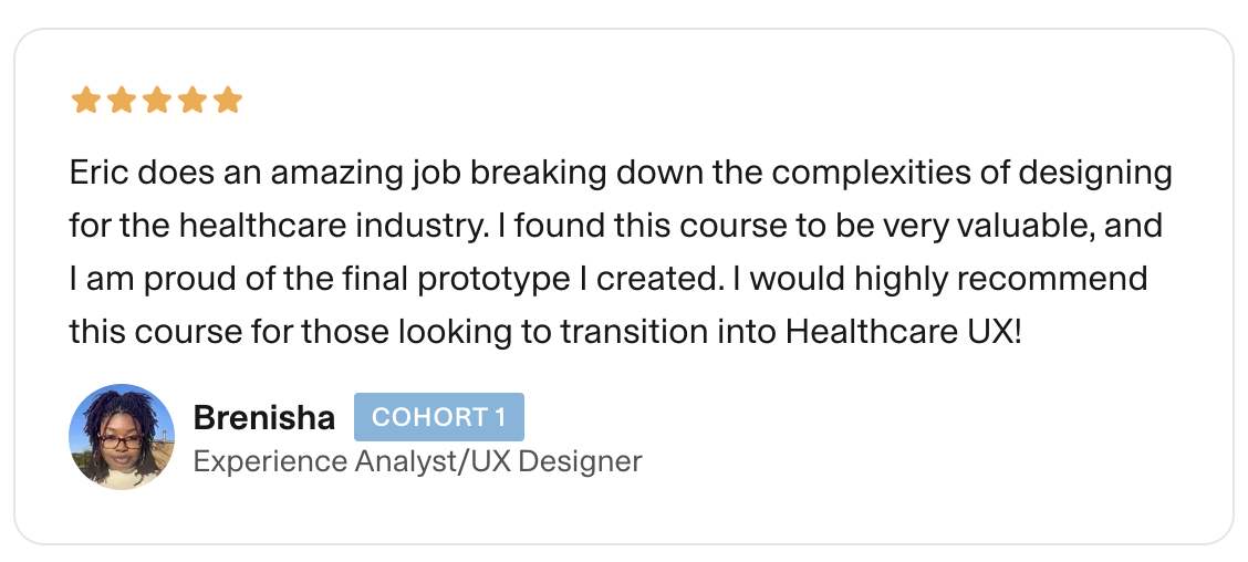 But breaking into healthcare UX requires more than design fundamentals. You need to understand regulatory requirements, patient safety, clinical workflows, and research ethics specific to healthcare environments.