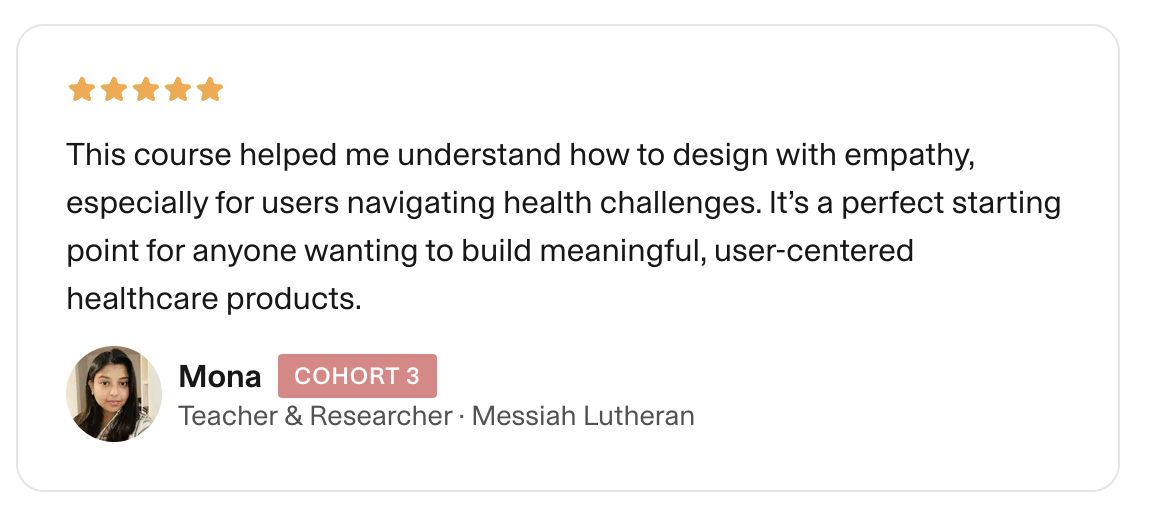 This course gives you the foundational knowledge and practical skills to specialize in healthcare UX — including the regulations, accessibility requirements, and patient-centered design principles that make this field distinct from any other.